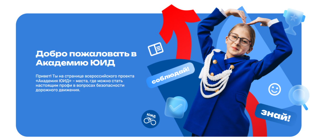 Академия ЮИД — Всероссийская инициатива по вовлечению детей и подростков в профилактику дорожно-транспортных происшествий. В рамках проекта организованы образовательные мероприятия, направленные на освоение основ правил дорожного движения и развитие навыков безопасного участия в движении. Проект реализуется Министерством просвещения России при содействии Главного управления по обеспечению безопасности дорожного движения Министерства внутренних дел Российской Федерации. 👮♀️📋